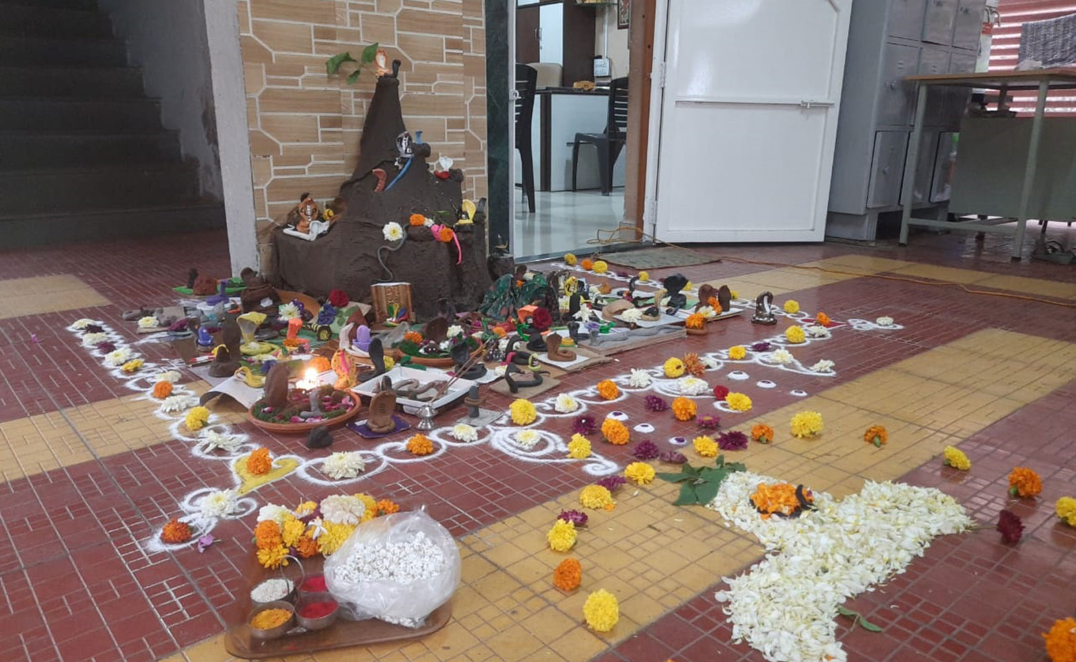 During Palkhi celebration, Palakhi is made and worshipped. Boys are dressed-up as ‘Varkaris’, and girls as ‘Muktabai’, carrying the pious Tulsi plant.